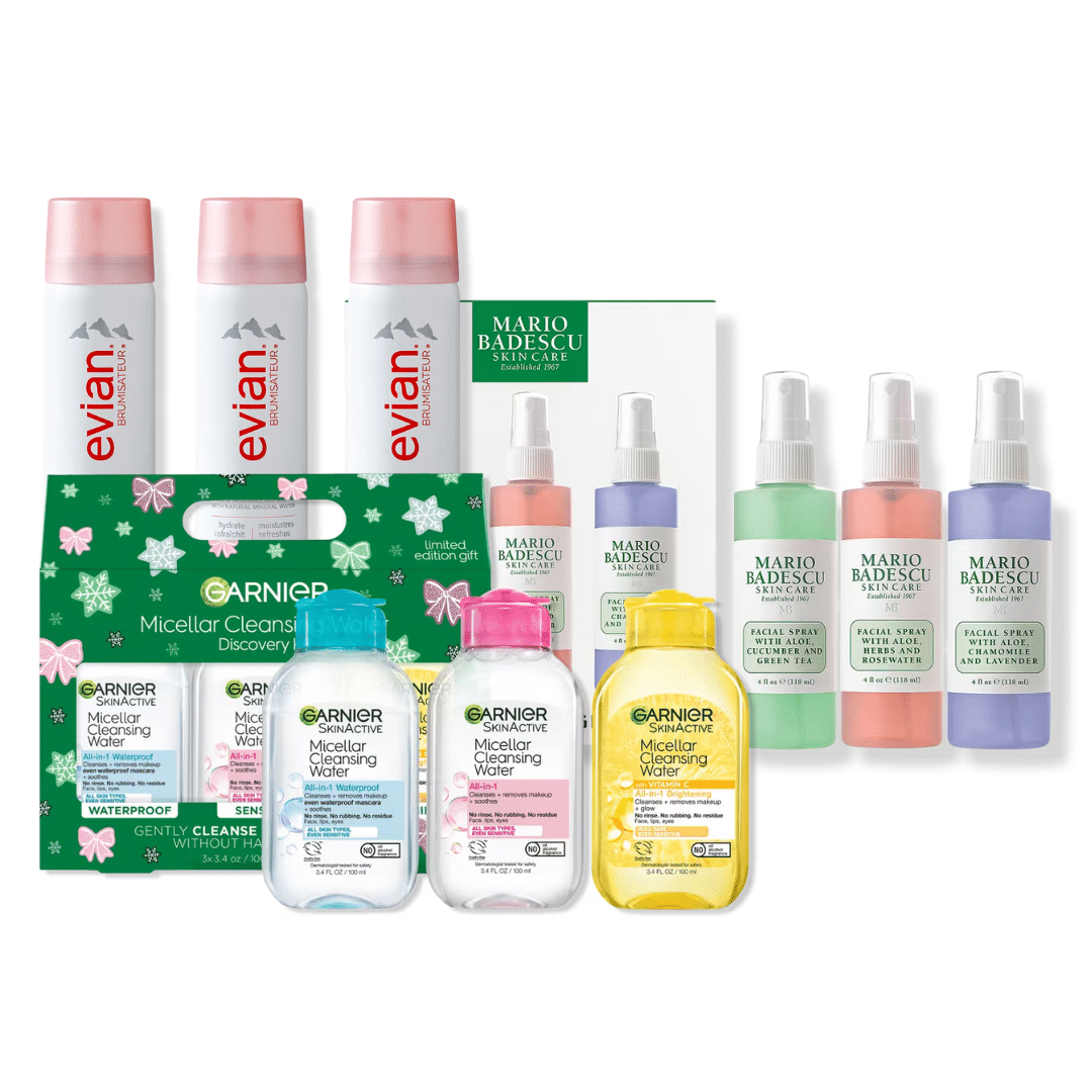 Micellar Water + Hydrating Facial Spray – Perfect for makeup mishaps and hydration between beauty steps.  These make great small gifts for birthdays, Christmas, or just because and typically work for all skin types.  If you aren’t sure, just grab whichever formula says “safe for sensitive skin”.